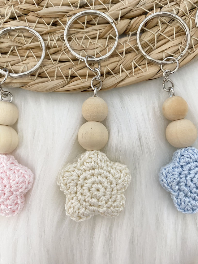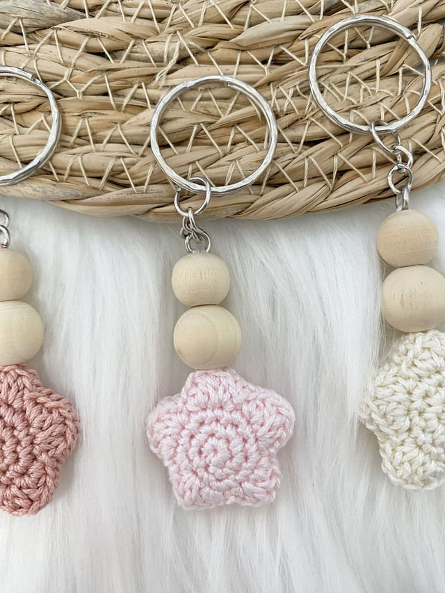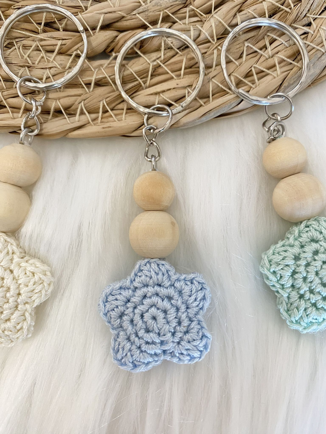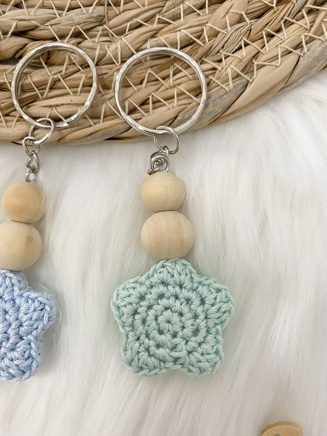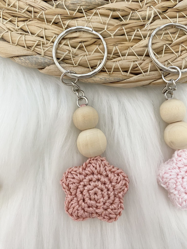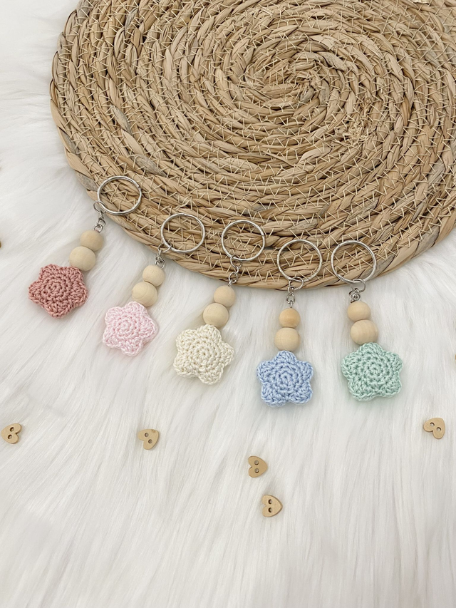 Porte-clés étoilé. Création originale en crochet et perles en bois.